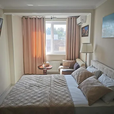 One Or Two Bright Bedrooms Apartments With An In House Restaurant Chişinau ligger mindre än 6 minuters promenad från St. Haralambios church in Chisinau och 15 km från flygplatsen Chișinău. Förutom restaurang har lägenheten också utsikt över staden.